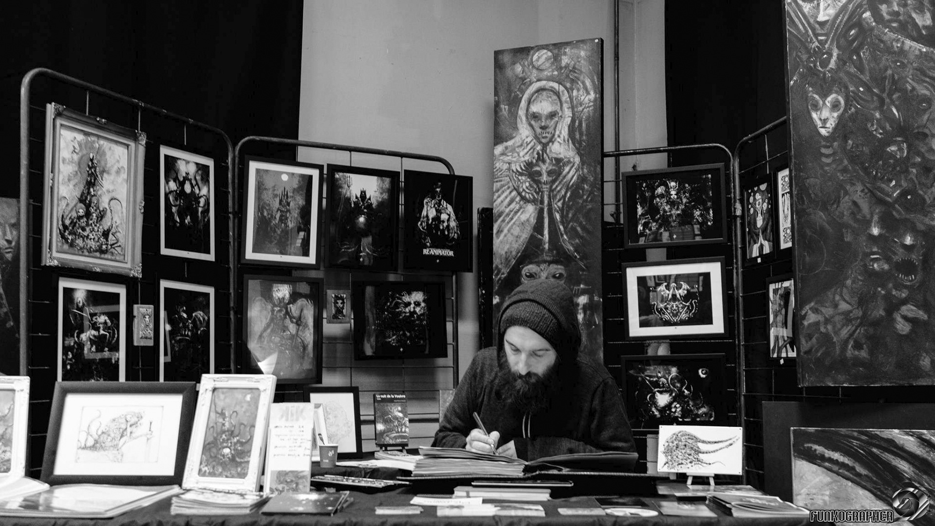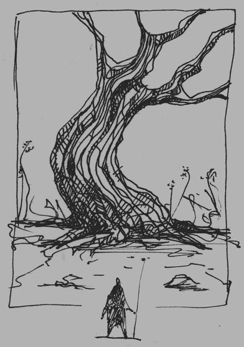 Il en résulte une palette de personnages ou de paysages hiératiques et mélancoliques, je suis influencé principalement par la peinture, la bande dessinée le cinéma.